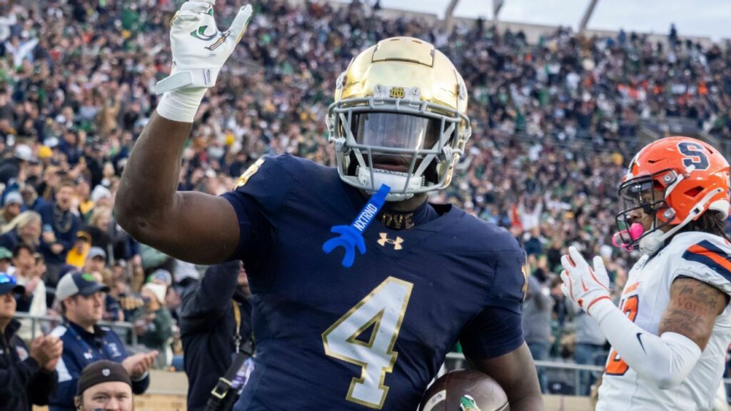 He finished third in Heisman voting behind winner Fernando Mendozathe quarterback of No. 1 Indiana, and Vanderbilt QB Diego Pavia. And he was Notre Dame’s first winner of the Doak Walker Award, given to the top running back in college football.