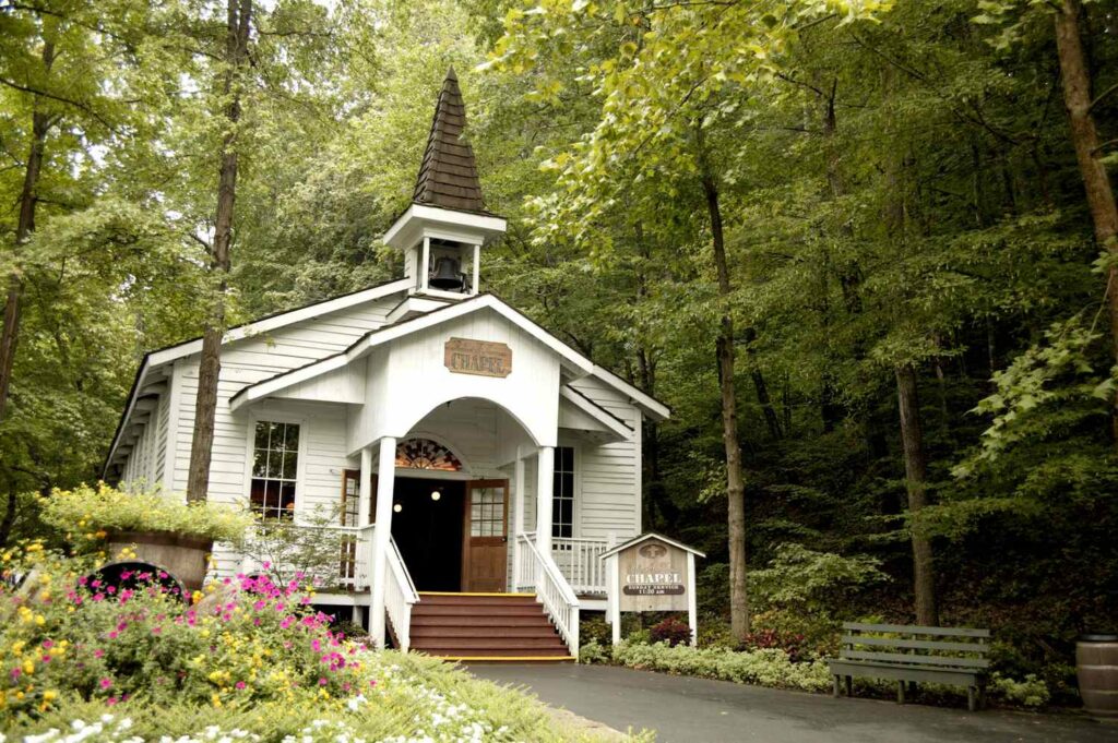 Every Sunday at 11:30 AM (4 PM during the Great Smoky Mountain Christmas season), inside the clapboard walls of the chapel, chaplain Joey Buck hosts an interdenominational service for anyone who wishes to attend. Chaplain Buck has been on staff with Dollywood Parks and Resorts for 16 years, and during his tenure, he’s continued the service tradition that began long before his arrival. “Every Sunday since the park has been open, we’ve had a church service in the chapel in the theme park,” he says.